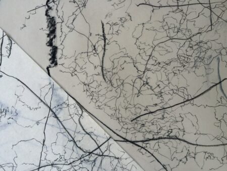 Drawings made by multiple agencies in the making: snow, ink, salt, water, sand and others